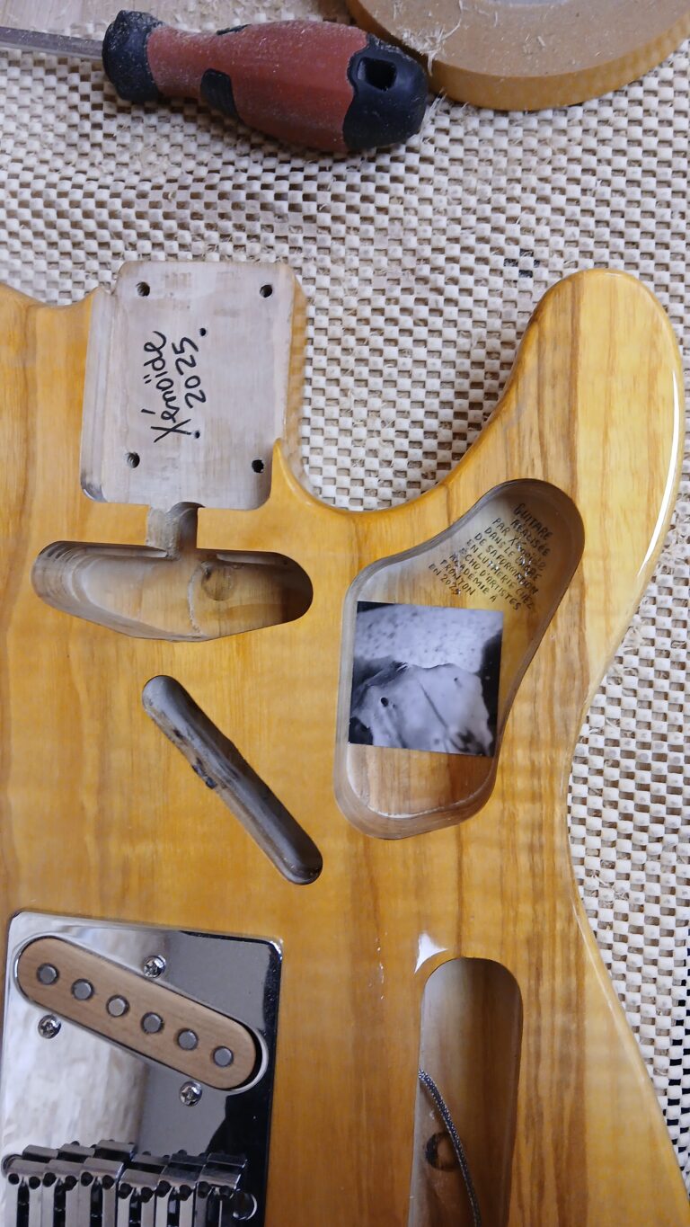 Première guitare de client à réparer à l’atelier, une Jim Harley « Les…