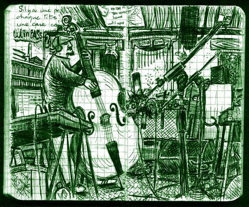 Home studio de mon fidèle compositeur, thomas Weirich, ci-dessus à la contrebasse. Sur l’enregistrement de la B.O. de « l’Autostoppeur ». Le titre devrait changer d’ici la fin des enregistrement pour devenir « Radio Billy ». On sera en février, je vous donnerai des…