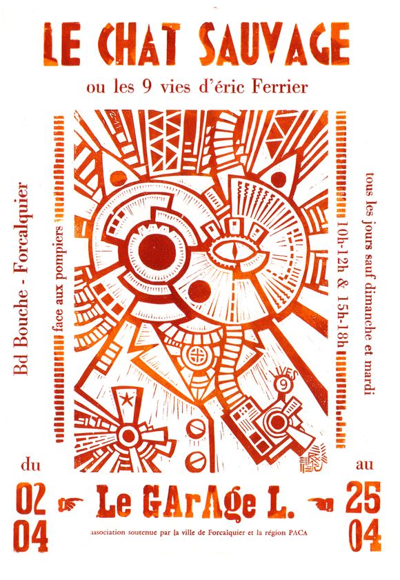 EXPO Le Chat Sauvage ou les 9 vies d’éric Ferrier, du 2 au 25 avril 2011. Vernissage le samedi 2 avril, venez nombreux au GARAGE L., Bd Bouche à Forcalquier !