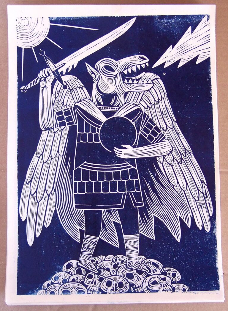 L‘appel au combat pour le Néant au nom du Tout. Impression lino format A3, numéroté et signé, 10 €.
