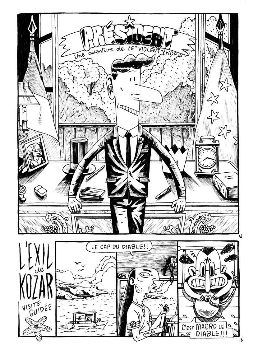 Dans cette première partie, MACR’HOP! le magicien devient président du royaume de France et, fort de son pouvoir, élimine la concurrence. L’ex-président KOZAR, aidé par KÖP, est forcé à l’exil. KÖP, lui, est rétrogradé. À l’ancien petit monde de KÖP viennent s’ajouter du nouveau monde: Les HOP!STES MACR’HOP, BRIDGET, BEN LALA, CASTAGNÈTE et les KÖPISTES CHARLIE, PEDRO, SWITTY ainsi que toute une galerie de personnages secondaires. Face à une population colérique, violente et sans avenir, KÖP devra user de tout son talent pour sauver sa peau et la France.