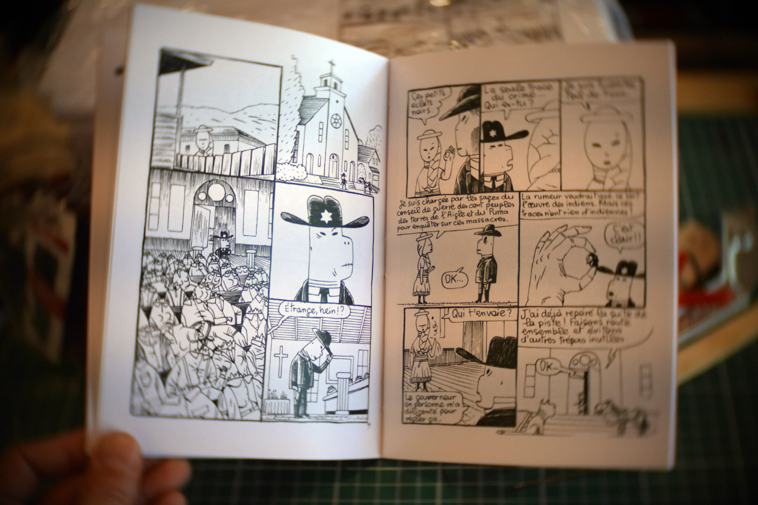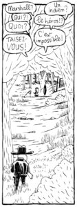 Au-delà de l’Ouest est une suite indirecte d’ENKI the Gash. On y retrouve le marshall qui tente de désarmer Enki, ou encore le village troglodyte et son shaman guidant Enki vers le monde des vivants. Cet album est aussi une introduction plus profonde au monde des morts avant un album plus imposant: THE KID, dont j’ai déjà partagé quelques extraits.
