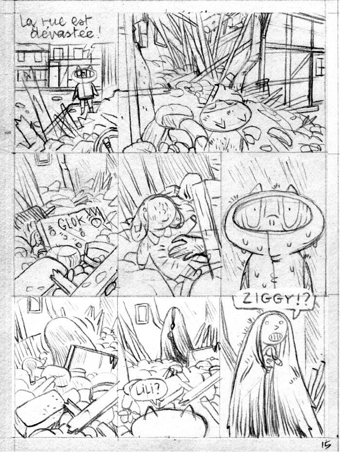 Je fais une nouvelle BD pour les Siffleurs éditeurs, L’été de Ziggy, avec des enfants, des chats et des allemands, le tout en mode Frankenstein monster… pour une édition en A6 noire et blanche, et une vingtaine de planches.