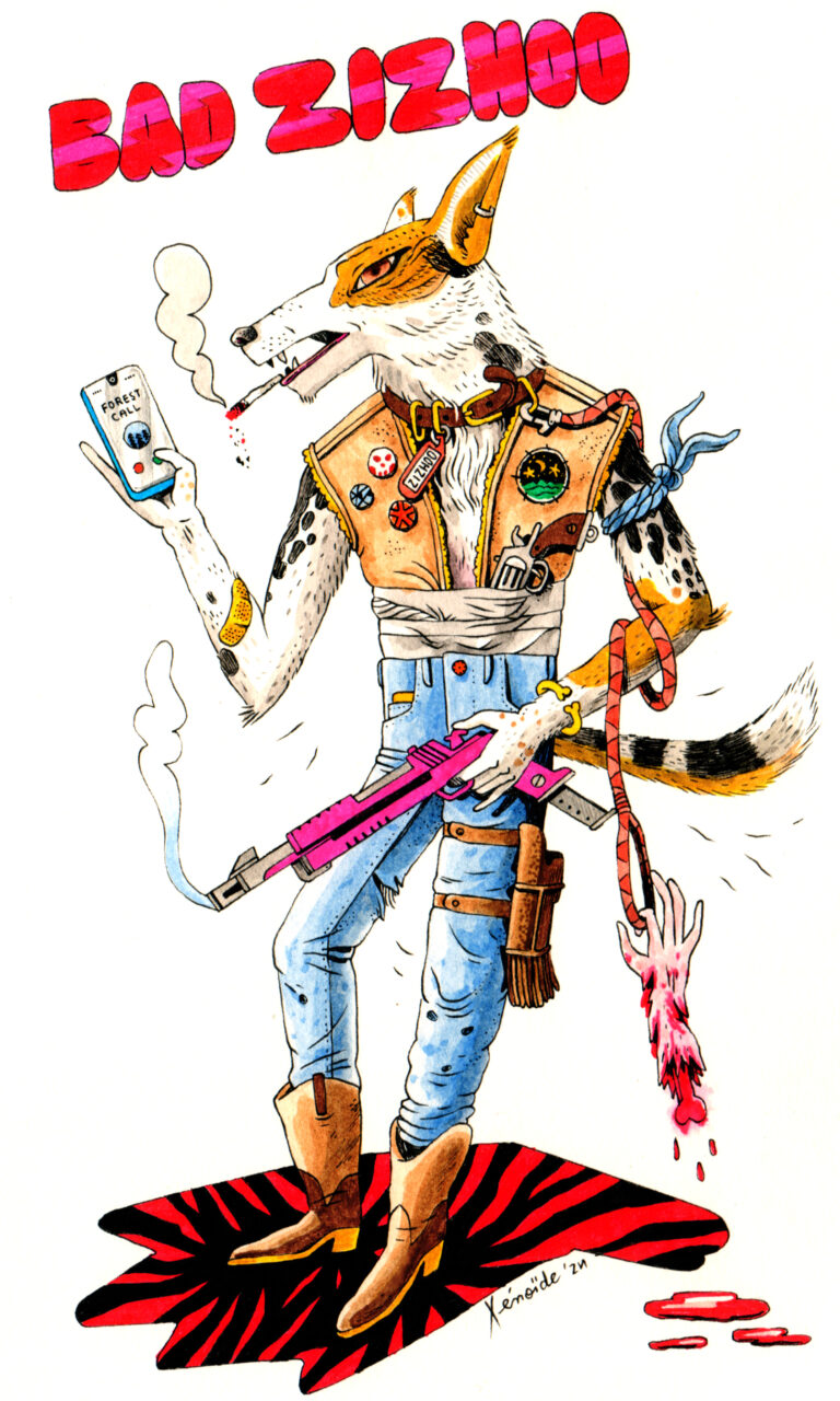 Badass Zizhoo en aquarelle et feutre pour le Season of the Bad…