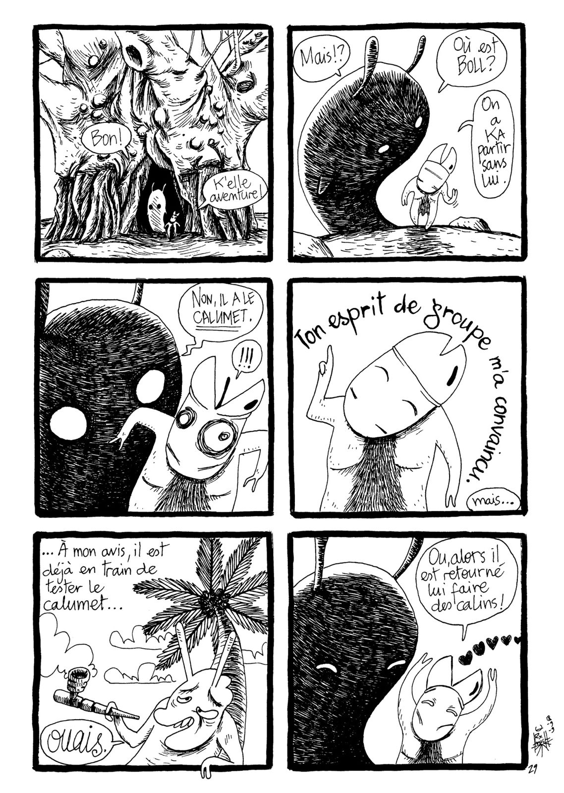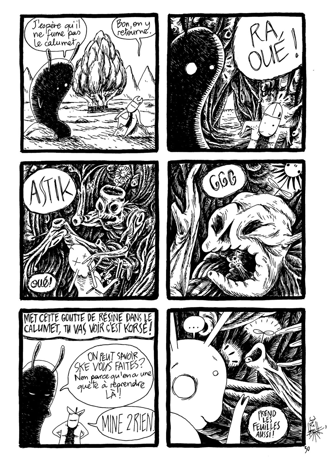 Voici une planche pour un album collectif. Il s’agit de refaire les planches de la BD de Pain(t): BILLY’S BOOK. Chacun étant libre sur la forme, mais en gardant le fond. Puis je me suis laissé tenté par le remake de la planche 30, et du coup elle n’a plus rien à voir avec l’originale…