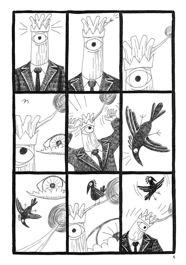 Le Dieu unique, le Grand Oeil à la vision plate, endoctrine l’homme-arbre (ignorant ses racines puisqu’enfouies sous le sol) et le somme de couper ses branches, symbole d’épanouissement spirituel et naturel, afin de suivre Sa volonté. Puis Il l’envoi convertir d’autres homme-arbres « sauvages » à ces croyances. Cet homme-arbre « premier », qui a coupé ses propres branches, se sent en droit de couper celles des autres. Ce qu’il fait. Le bras de l’homme-arbre s’abat sur les réticents et les blasphémateurs, illustrant la colère de Dieu, toujours plus grande tant les bras armés se multiplient.