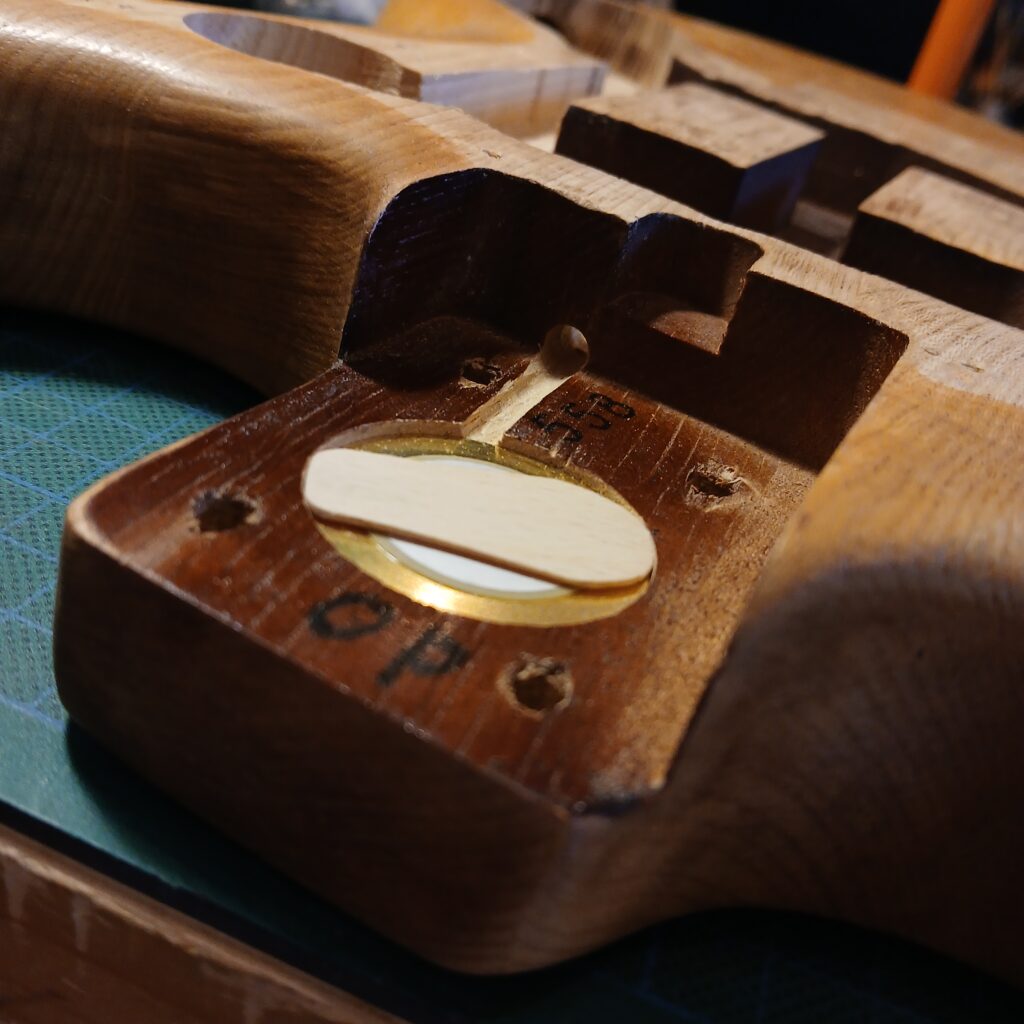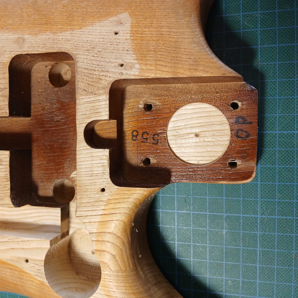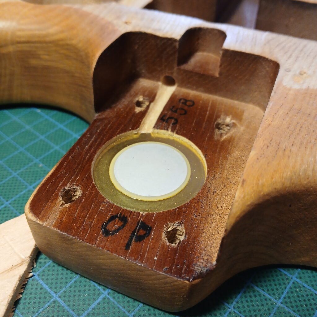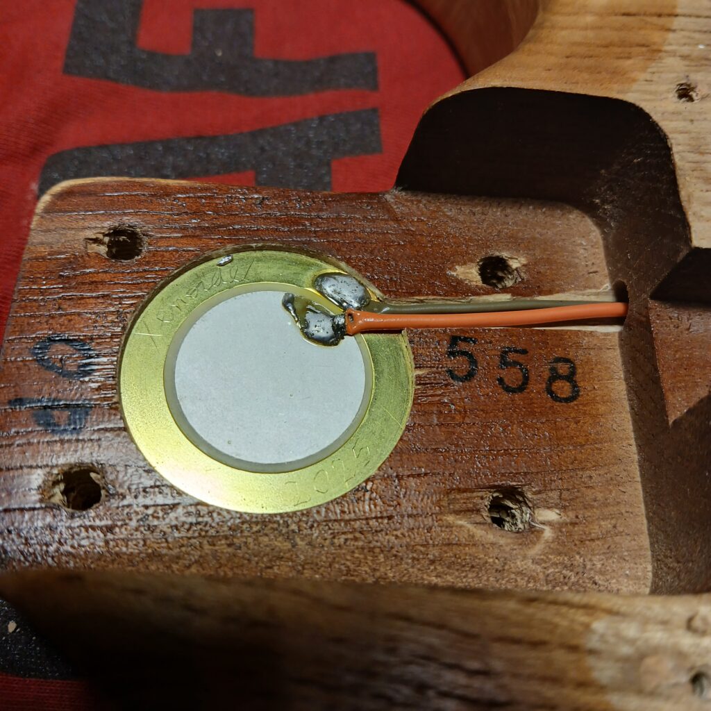 Pour finir, j’ai créé un espace dans le talon du manche pour poser un piézo.